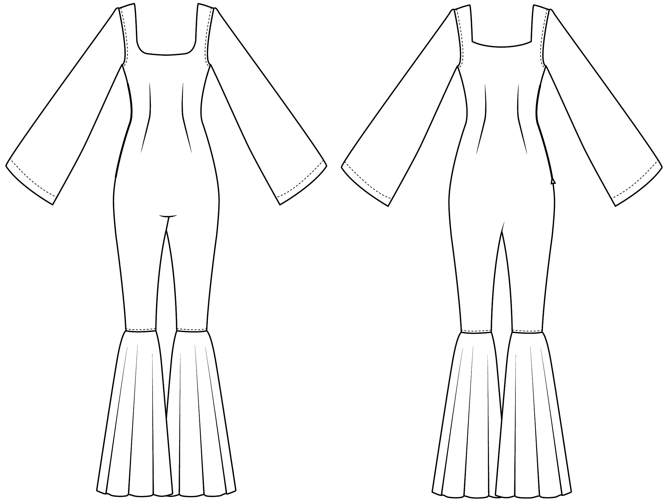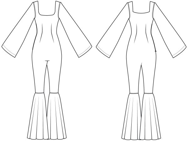 سالوبيت مكون من قطعة واحدة, بفتحة عنق مربعة متسعة, بخطي كم معتدلين, محبك على الجسم حتى منتصف البنطلون بعد ذلك يبدأ في الأتساع حتى نهاية خط الذيل الذي يصل طوله إلى كعب القدم، الأكمام طويلة متسعة من بداية حردة الإبط وتزداد في الأتساع حتى نهاية الكم.